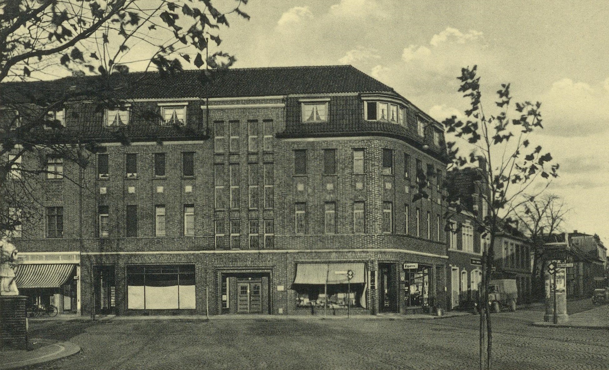 Zu seinen frühen Mitgliedern zählte u. a. der Verein der vereinigten Kaufleute, Handwerker und Gewerbetreibenden der Stadt. Die erste Geschäftsstelle richtete man in der Nordstraße 17 ein. Unter der langjährigen Leitung des Vorsitzenden Johann Imping (Konditormeister) konnte sich die Organisation weiter ausbauen und festigen. Krönung seiner Arbeit war die Errichtung des großen Mittelstandshauses, dessen Grundsteinlegung Ende 1926 erfolgte und am 2. Oktober 1927 seiner Bestimmung übergeben wurde. Das um 1930 entstandene Foto zeigt das im Architekturstil der Neuen Sachlichkeit gebaute Haus an der Ecke Ravardi-/Dinxperloer Straße. Der Blick des Betrachters richtet sich nach Osten in die Ravardistraße. Am linken Bildrand erkennt man die Statue des Brückenheiligen Nepomuk, die zur Westendbrücke ausgerichtet ist.